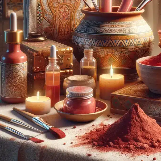 • Rouge à lèvres et fard à joues : Mélangé à de l’eau de rose, il offre une teinte naturelle et longue tenue.