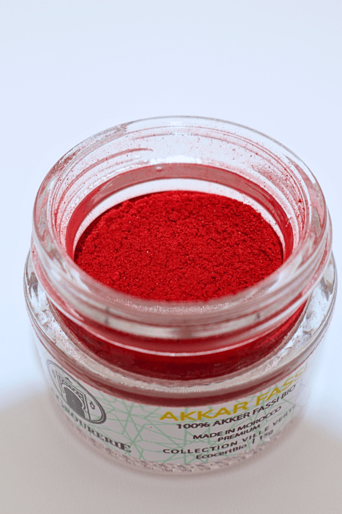 Depuis plusieurs siècles, l’Aker Fassi occupe une place centrale dans les rituels de beauté marocains. Des manuscrits anciens et récits historiques témoignent de sa présence dans les trousseaux de mariage et les rituels de purification, incarnant à la fois beauté physique et attachement aux traditions locales. Ce produit est notamment enraciné dans les traditions des femmes amazighes, qui en ont perfectionné l’usage au fil des siècles. Connectées à leur environnement naturel, ces femmes utilisaient les coquelicots et les grenadiers, abondants dans leurs régions, pour fabriquer cette poudre aux reflets rouge vif. Bien plus qu’un outil de beauté, l’Aker Fassi représentait l’élégance et le savoir-faire transmis de mère en fille.