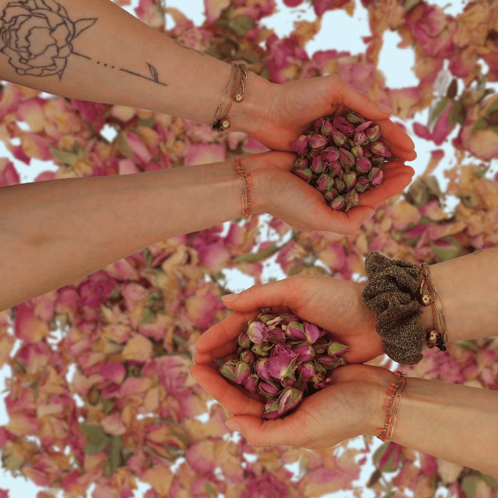 Les pétales de roses sont cueillis à la main, aux premières lueurs de l’aube, lorsque leur parfum et leurs propriétés sont à leur apogée. Ce processus minutieux est similaire à celui employé pour récolter les boutons de roses séchées, un autre produit emblématique de la région.